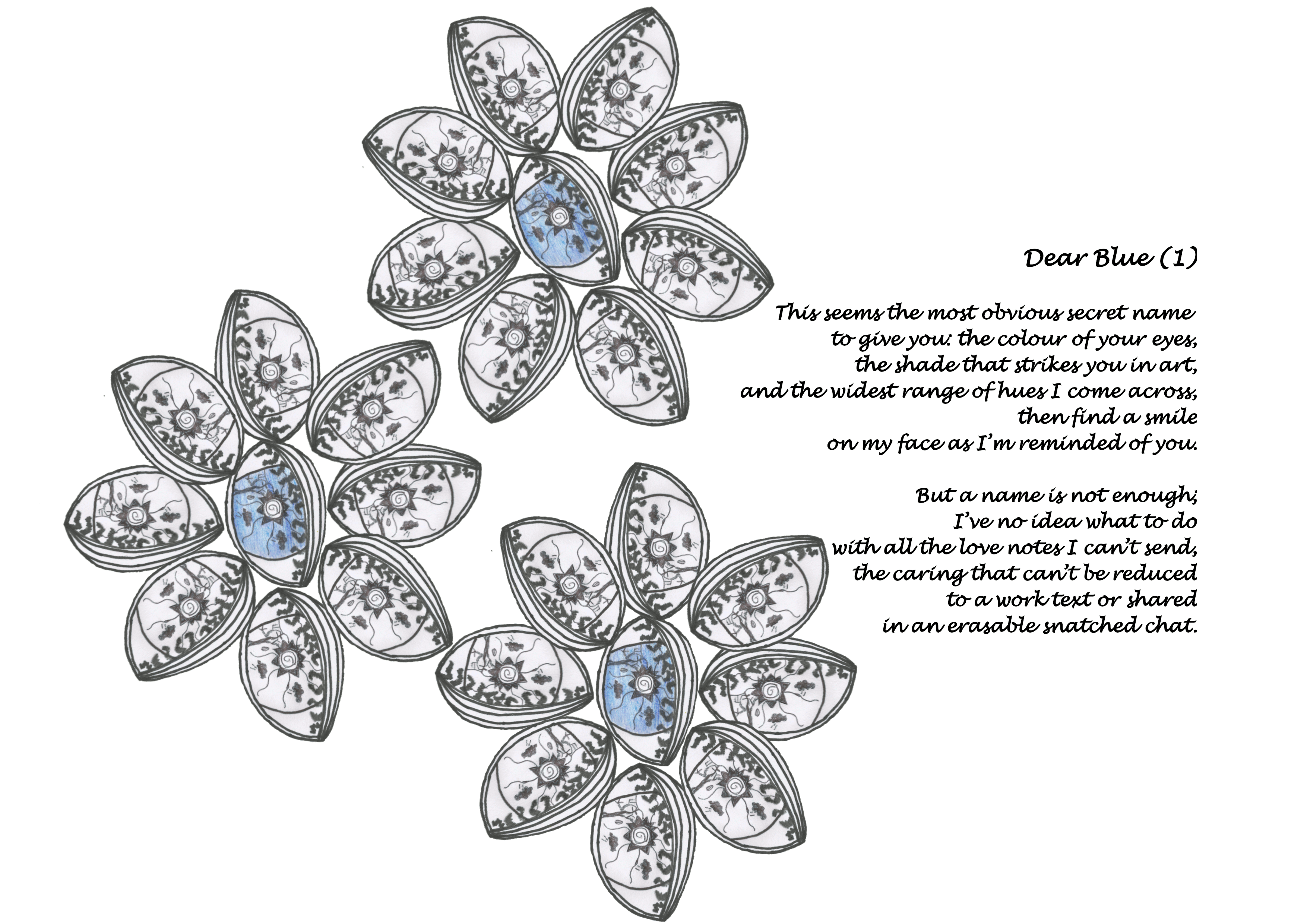 Again, the drawing/image shapes meant I had to change the poem’s layout compared to the comparatively straight-forward right-aligned text in the book.